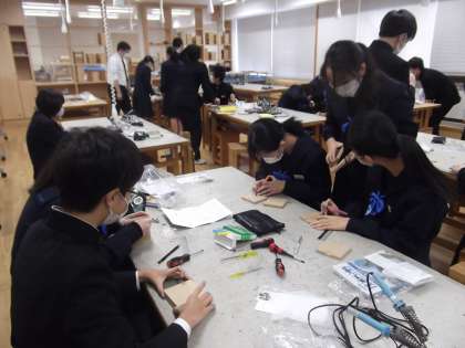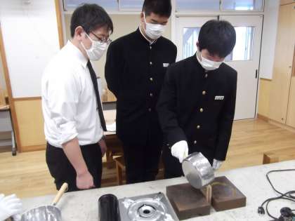 3−1は技術で、鋳造によるキーホルダーづくりに取り組んでいます。溶けた金属を流し込む作業は、かなりドキドキするようです。