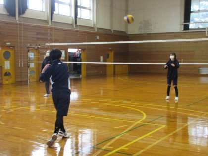 学年末考査が終わり、部活動に活気が戻ってきました。生徒は、さわやかな汗を流していました。(写真:バドミントン部、バレーボール部、卓球部)