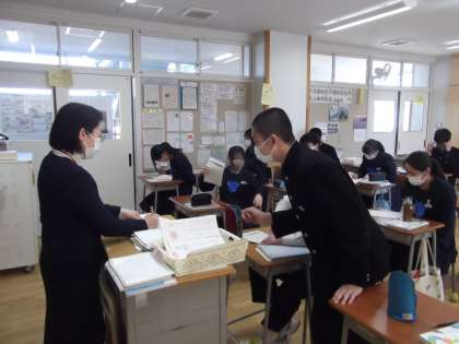 2月の最終週、3月の第1週の始まりとなりました。「1月は行く月、2月は逃げる月、3月は去る月」と言われる通り、あっという間に日が過ぎていきます。3年生にとって、中学生として「教科の授業」を受けることができる日数も、今日を含め残り7日となりました。一日一日、一瞬一瞬を大切にして生活しましょう。