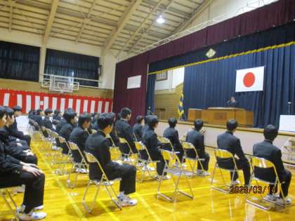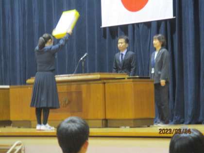 本日、同窓会入会式と卒業記念品贈呈式が行われました。
