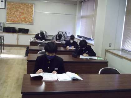 寺子屋では、集中して自主学習に励む大中生の姿があります。明後日は修了式となりますが、毎日の取り組みは終了させないでほしいと思います。