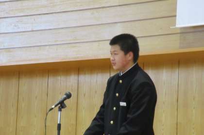 1年生は、困難にめげず、いろいろなことに前向きに挑戦することの大切さを語りました。