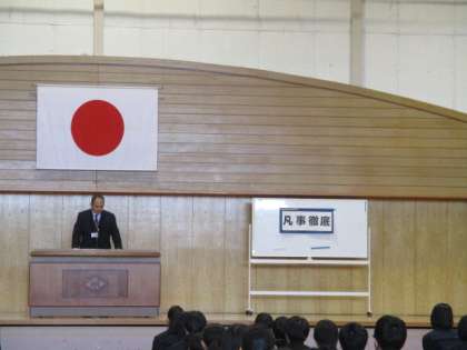 始業式では、校長が「凡事徹底」の言葉を掲げ、この一年間で当たり前のことが当たり前にできることを継続して行おうという話がありました。