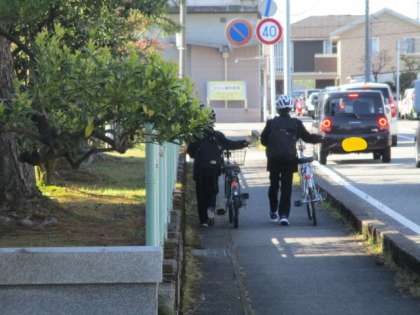 本日は1年生の自転車点検もあり、自転車を牽きながら登校していました。真新しい自転車、ヘルメットがとても初々しいですね。