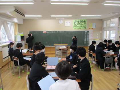 4限は全学年学級討議の時間として、生徒総会に向けて各班に分かれて協議する場面が見られました。