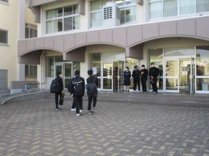 生徒たちは給食がないため、昼食の弁当を持参して登校しています。保護者の皆様、朝早くからの弁当づくり、誠にありがとうございます。生徒たちは弁当を心待ちしているかのように、うれしそうに登校していました。