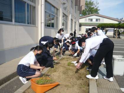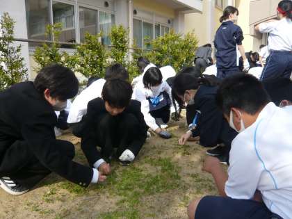 ボランティアを募り、生徒会執行部と環境委員会の合同企画「ピカピカクラブ」と題して、花壇の草むしりを放課後に行いました。たくさんの生徒が参加してくれたおかげで、あっという間にきれいになりました。この後、きれいな花を植える予定です。