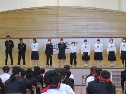 各団の団役員がステージに上がり、団長が役員を紹介するとともに、決意表明をしました。