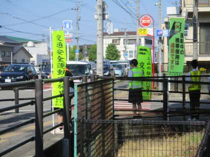 本日もサイクル安全リーダーは、学校近くの交差点で交通安全を呼びかけていました。
