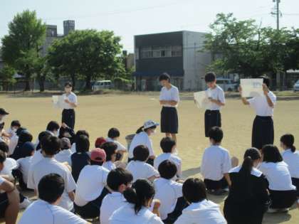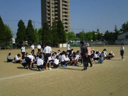 各学年ごとに除草する区分を決め、担当した場所の除草や石拾いを積極的に行っていました。