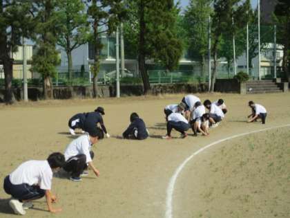 環境委員会の呼びかけによるグラウンド除草に、多くの生徒や教員がボランティアとして参加しました。