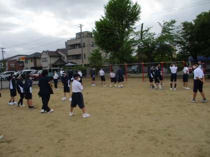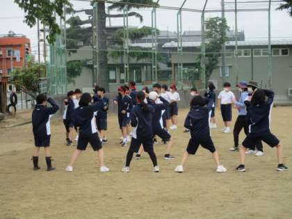 メインの会場とバックネット側、校舎側に分かれ、ローテーションしながら場所を変え、練習を行いました。