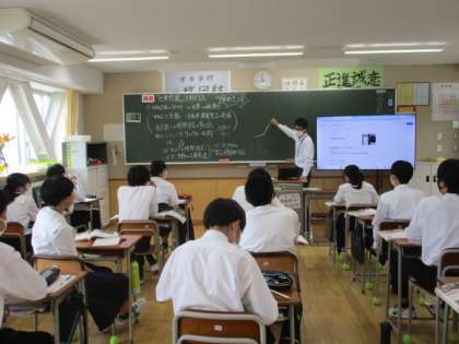 教育実習生の実習期間も早いもので明日までです。本日は授業を公開し、実習期間の成果を本校教員に見てもらっています。
