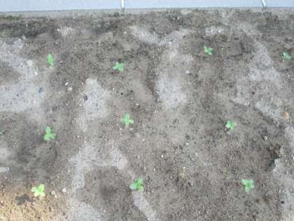 本校南側駐車場に面する花壇に植えたひまわりの種からどんどん芽が出てきました。
