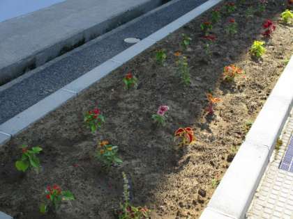 ひまわりの横の花壇にも、先日環境委員が植えた花苗が順調に育っています。