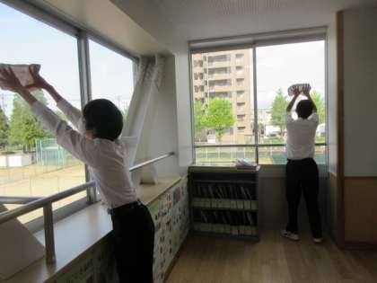 毎月13日(大中の日)に、生徒会執行部と環境委員会の合同企画「ピカピカクラブ」と題して、ボランティア活動を行っています。今月は、窓ふきとドアレーン磨きです。