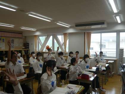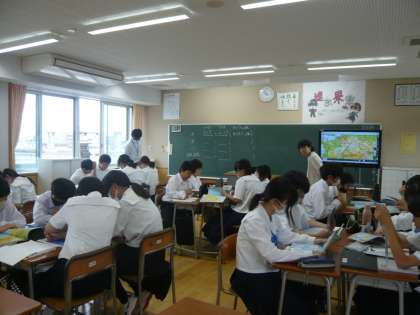 (写真中:2年社会)積極的に自分の考えを表現しています。