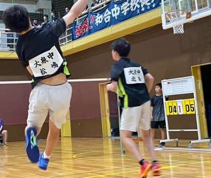バドミントン部団体戦、一回戦は大沢野中と対戦し、2−1で勝ちました。二回戦は山室中学校と対戦しました。
