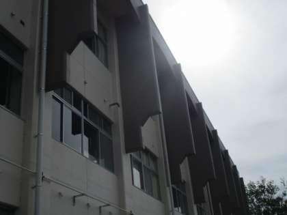 校舎南側に植えてあるひまわりも、光を浴びて順調に育っています。