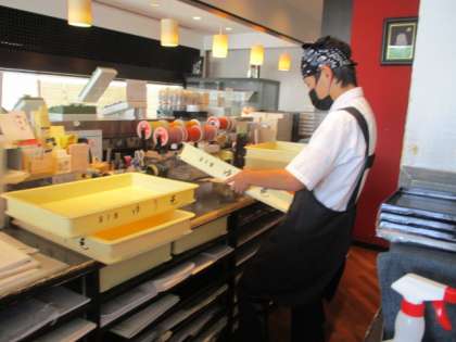 テーブルの消毒や食器ふきなど行っていました。「お願いした仕事を一生懸命に取り組んでいます。」とお褒めの言葉をいただきました。