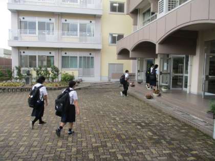 昨日も下校時に大雨となりましたが、本校では、登下校時に激しい大雨となった場合は水かさが急に増えるため、川や用水、側溝等には絶対近づかないこと、また雨が激しく降ったり、雷鳴が近かったりする場合はコンビニ等の店舗に一旦待避するよう生徒へ指導しております。地域の皆様には、ご協力いただけますようお願いいたします。