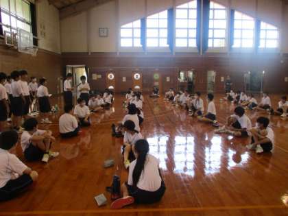 今学期最後のお楽しみ「学年レクリエーション」では、「だれが、いつ、どこで、何をした?ゲーム」とドッヂボールを行いました。学年生徒会の緻密な計画とスムーズな進行のおかげで、みんなで楽しい時間を過ごすことができました。
