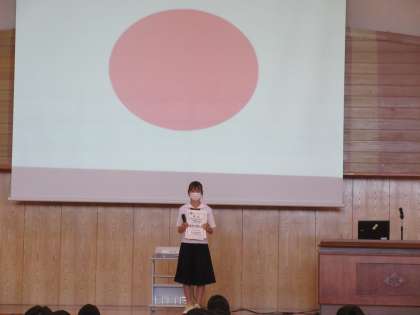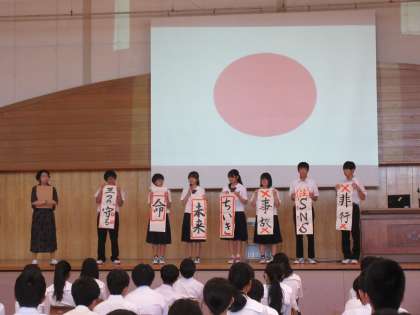 生徒指導主事は、生徒会執行部の生徒と一緒に、夏休みの過ごし方について、3つの守る(命、未来、地域)を取り上げ、分かりやすく指導しました。