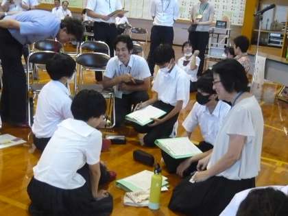 〈写真上・中〉参観者の方々にもご協力いただき、ロールプレイをしている様子