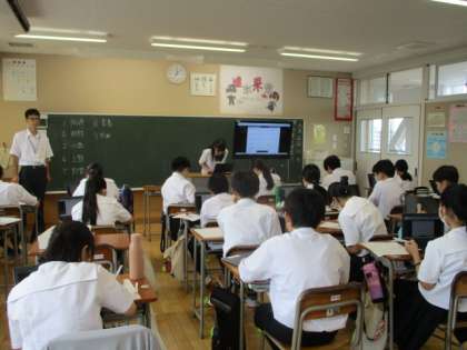 1年生は、夏休みの課題レポート「身近な人の職業調べ」の発表会を学級内で行いました。レポートをクロームブックにデータとして入れ、それを全員で見ながら発表しました。知らなかった職業について学ぶことができた有意義な時間となりました。