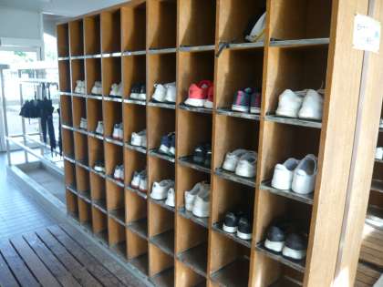 生徒玄関の下駄箱も整理されています。玄関は、学校の顔です。