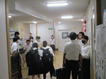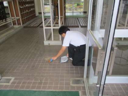 生徒玄関では、昨日のソフトボールの授業で入り込んだグラウンドの砂埃を掃く教員のお手伝いを、3年男子生徒が率先して行っていました。大中生のボランティア精神を垣間見た瞬間でした。