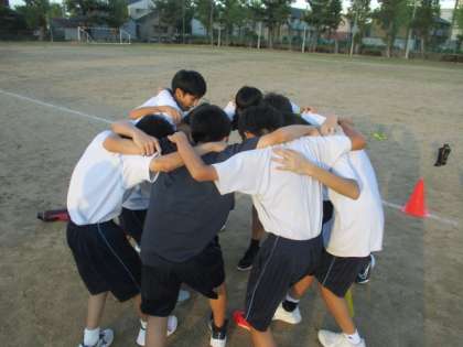最後は円陣を組んで明日の健闘を誓い合いました。