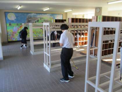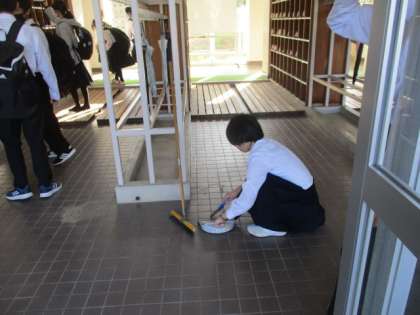 本日はその様子を見た体育担当教員が、生徒と一緒になって生徒玄関を掃いていました。