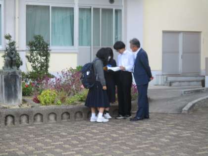 登校時に傘を持っている生徒も見かけました。自分で考え行動できればいいですね。