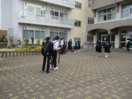 さて、本日は強い風にも負けず、大中生は元気に登校しています。