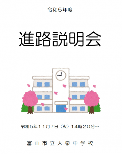 11月7日(火)14:20〜進路説明会を実施します。受付は14:00〜です。生徒玄関からお入りください。是非ご出席くださいますよう、お願いいたします。