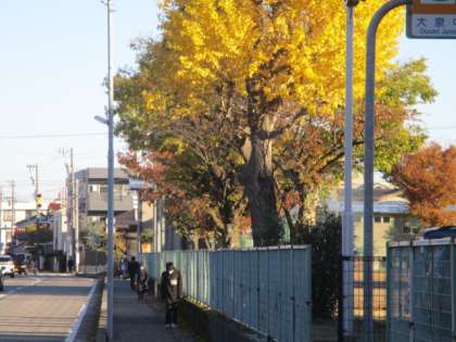 数日の寒さからからグラウンドの樹木も冬支度しはじめました。色合いも黄色や茶色に変化し始め、落葉もこれからというところです。