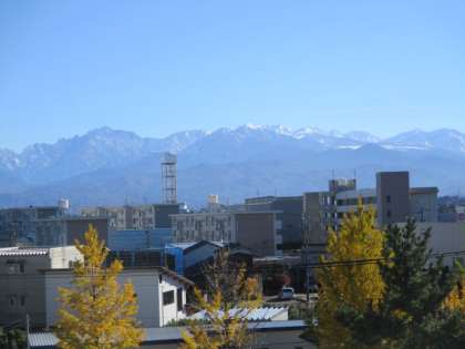 下:北館4階東側廊下(1−1側)からの立山連峰
