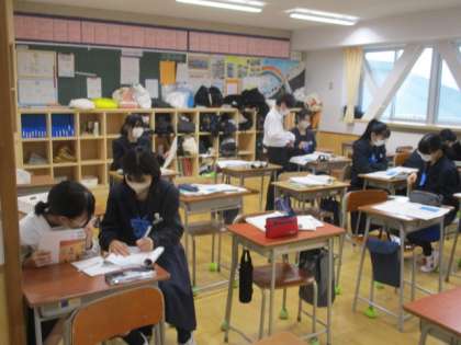 下:2−2 英語 スピーキングテスト(クラスで練習中)