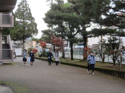 本日も大中生は寒さに負けず登校し、中には挨拶ボランティアの活動に参加してくれる生徒もいます。