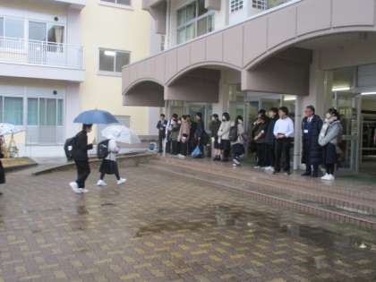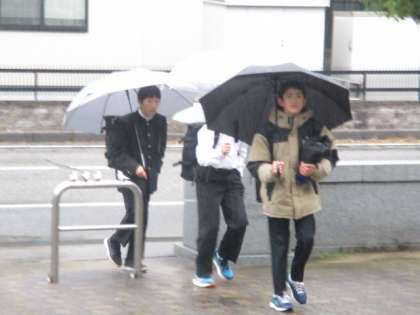 雨が降る中、大中生は元気に登校しています。