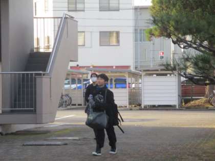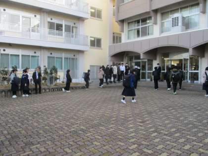 大中生は元気に登校し、本日も多くの生徒が参加して挨拶運動を行っています。