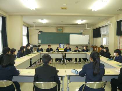 写真上:2学期の振り返りと3学期の取組について話し合う代議員
