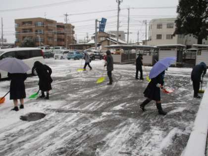 今朝は3年生の有志で除雪をしてくれました。
