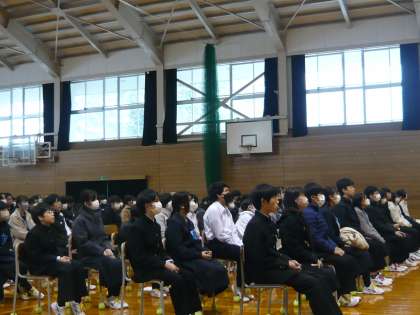 校長は、「雲外蒼天」の四字熟語をあげ、夢や目標を達成するためには、自分のためだけでなく、誰かのためにと思いながら我慢することも大切である、と式辞を述べました。