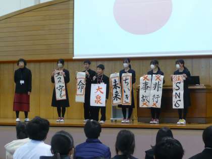 終業式後、生徒指導主事から、冬休み中の留意点についてお話がありました。