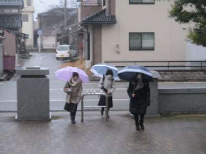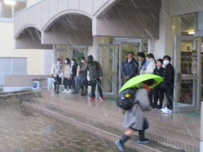 今日も雪の中、生徒玄関前で挨拶運動を行いました。