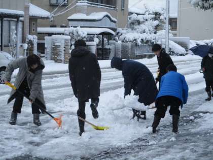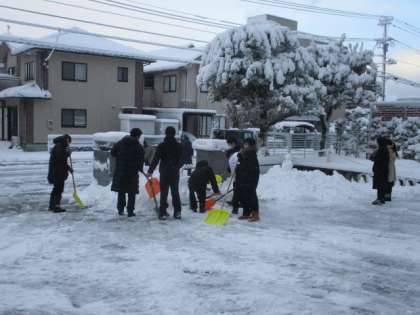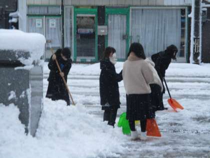 今朝は教職員と早くから登校した生徒と共に、玄関前の除雪を行いました。