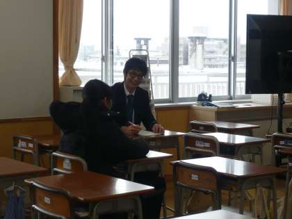 放課後に教育相談を行っています。担任の先生との会話を楽しんでいます。
