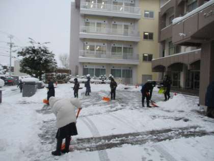 生徒の登校に合わせて、短時間ではありましたが除雪を行いました。今日の雪はとても軽かったため、スムーズに終えることができました。
